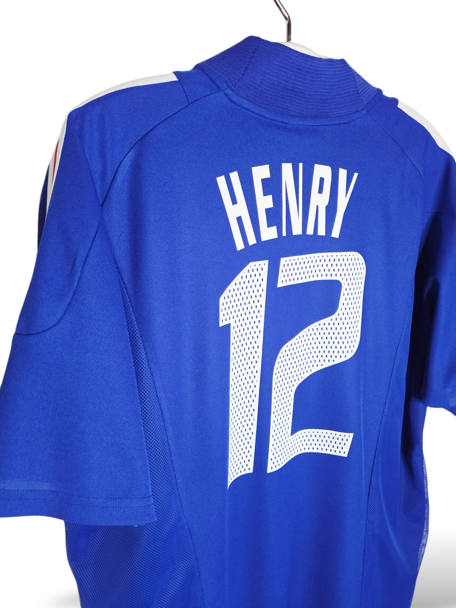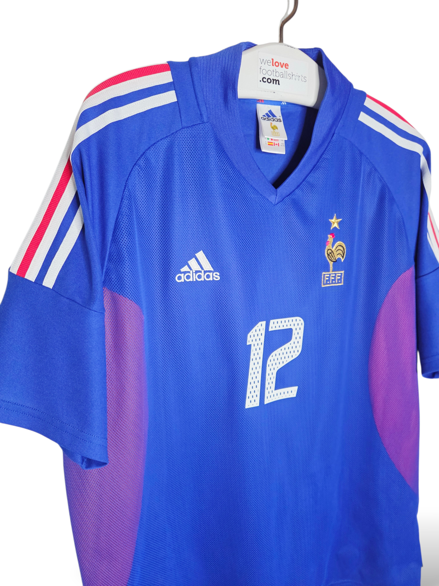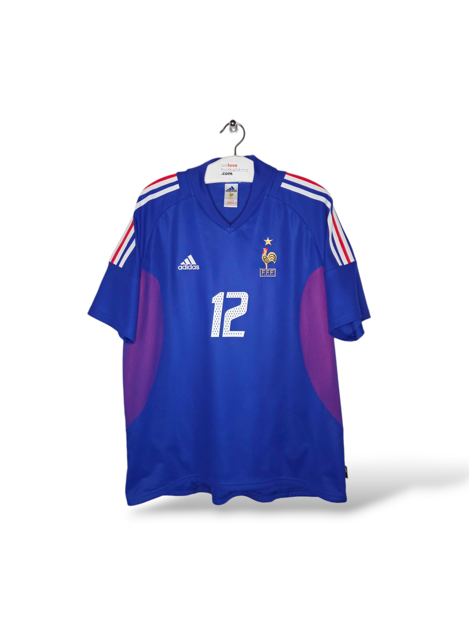Relive the 2002 World Cup with this original France home shirt from Adidas, worn in the tournament where Thierry Henry, the undisputed star player, was the face of Les Bleus. With his iconic number 12, this shirt is a must-have for fans of French football history and vintage shirts.