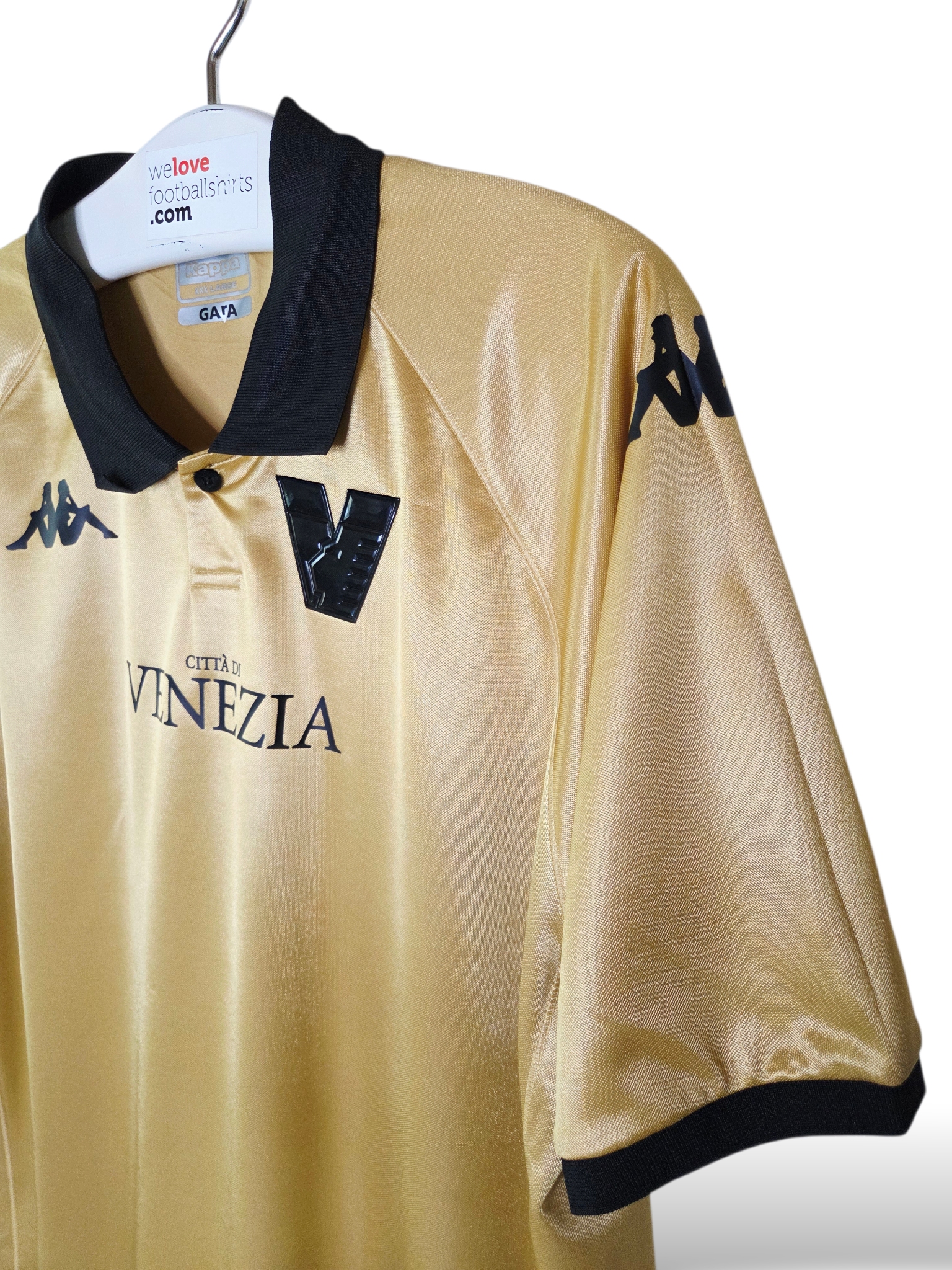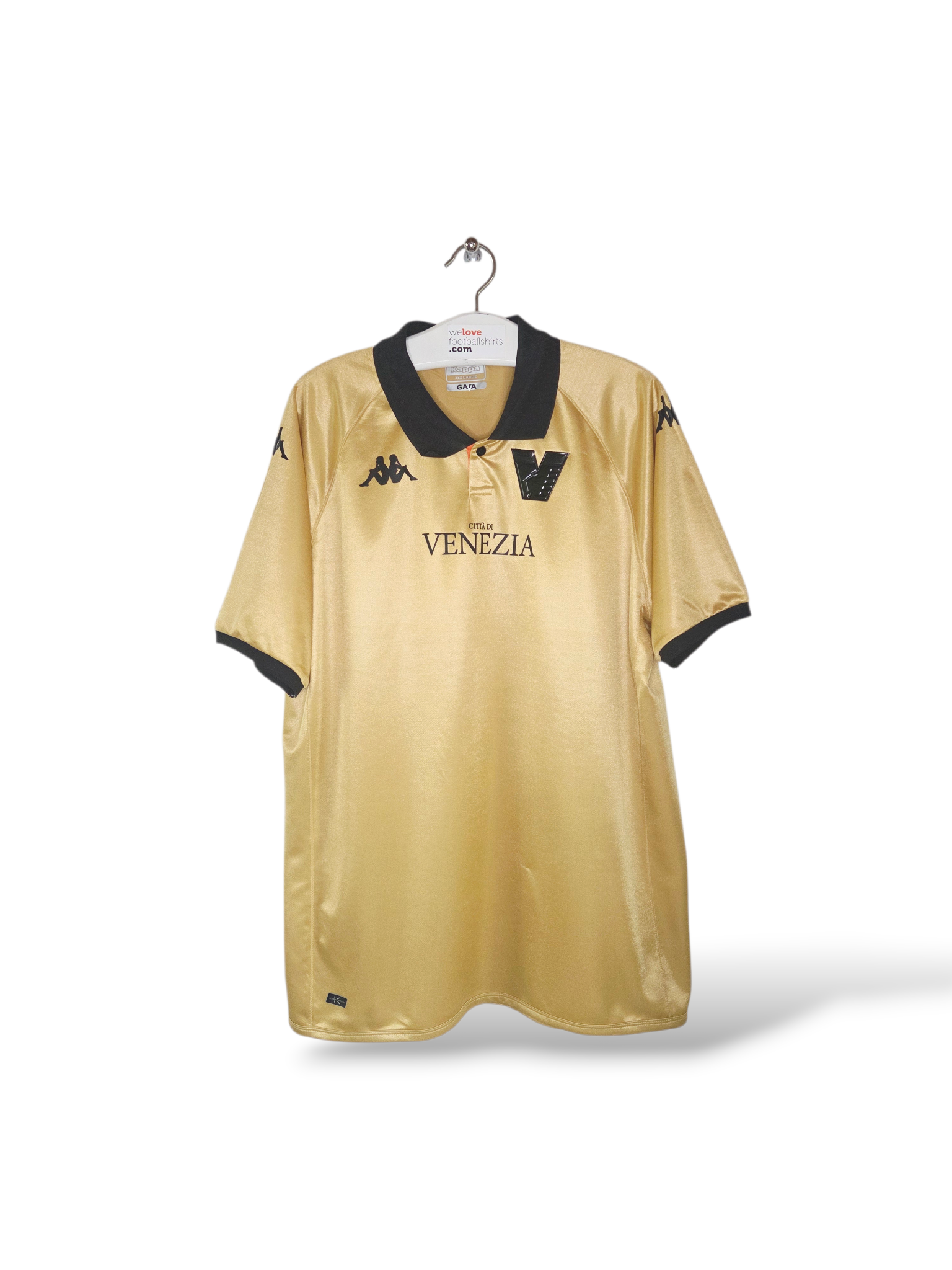 The Venezia FC 2022/23 Third Kit, produced by Kappa, features a striking metallic-gold design that pays homage to the city's gilded churches, monuments, and historical significance in art. Designed in collaboration with Bureau Borsche, the shirt is widely considered a "modern classic" in football fashion.