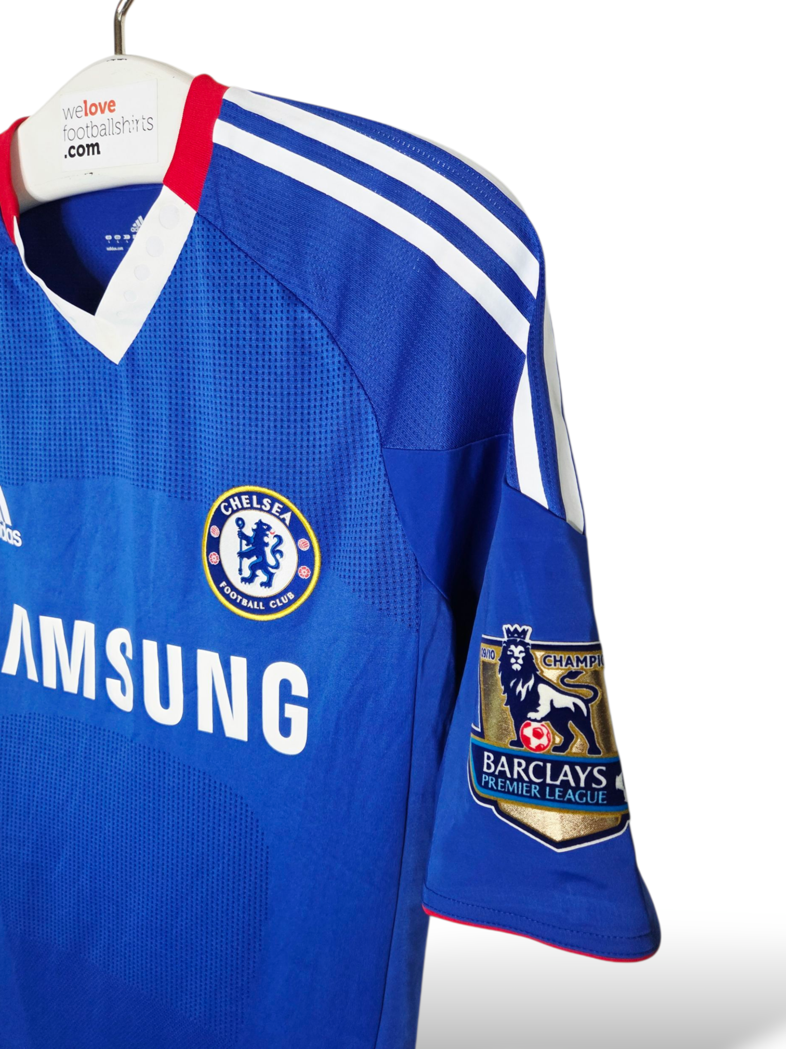 Dit shirt is identiek aan de versie die de spelers droegen tijdens Premier League-wedstrijden. De gouden mouwpatches zijn speciaal – alleen gedragen door Chelsea als regerend kampioen in het voorgaande seizoen.