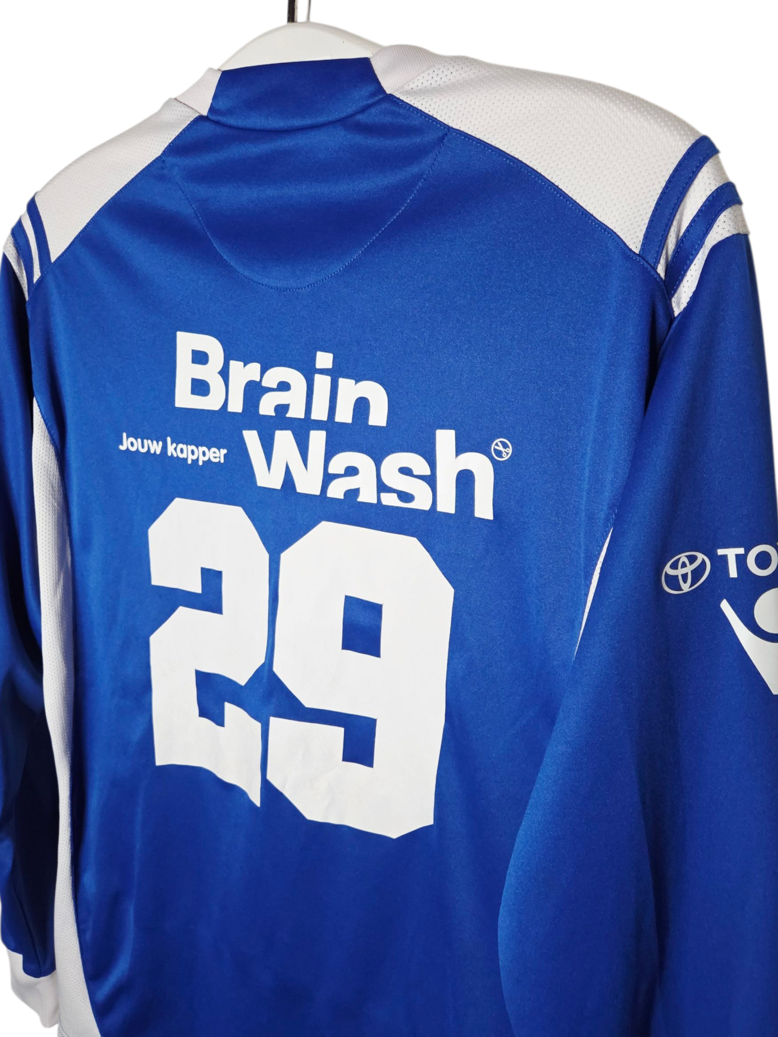 Uniek matchworn FC Den Bosch thuisshirt uit het seizoen 2013-2014, geproduceerd door Macron. Dit originele wedstrijdshirt is uitgevoerd met rugnummer 29, heeft lange mouwen en komt uit de KKD-competitie. De drager is helaas onbekend, maar het shirt zelf verkeert in uitstekende conditie (9.5/10) — een prachtig stuk Bossche voetbalhistorie.
