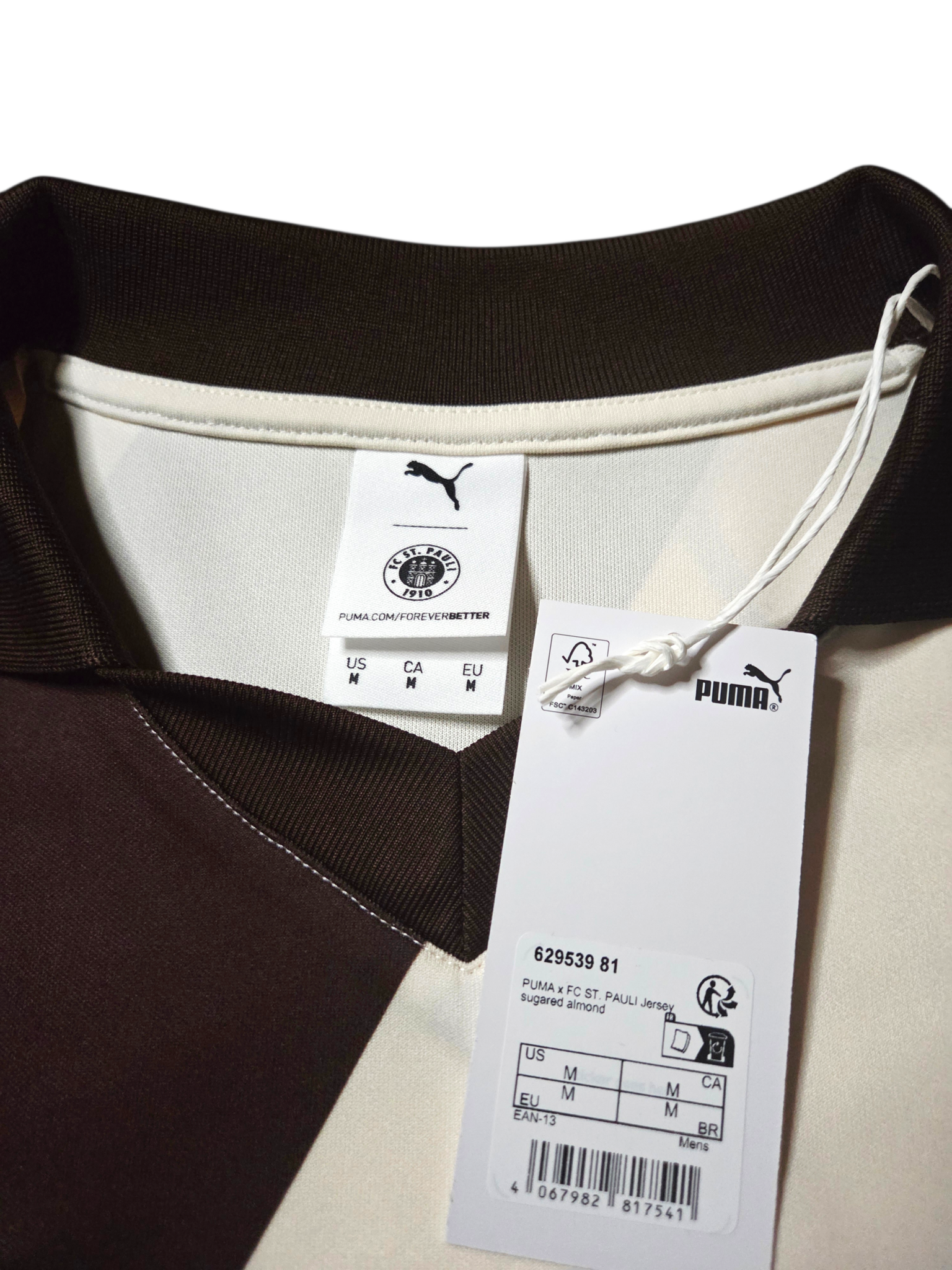 Dit shirt, onderdeel van een samenwerking tussen Puma en FC St. Pauli, is een specifiek, op streetwear geïnspireerd item met een vintage uitstraling. De kleur "Sugared Almond" is een lichtbruine of beige/lichtbruine tint.