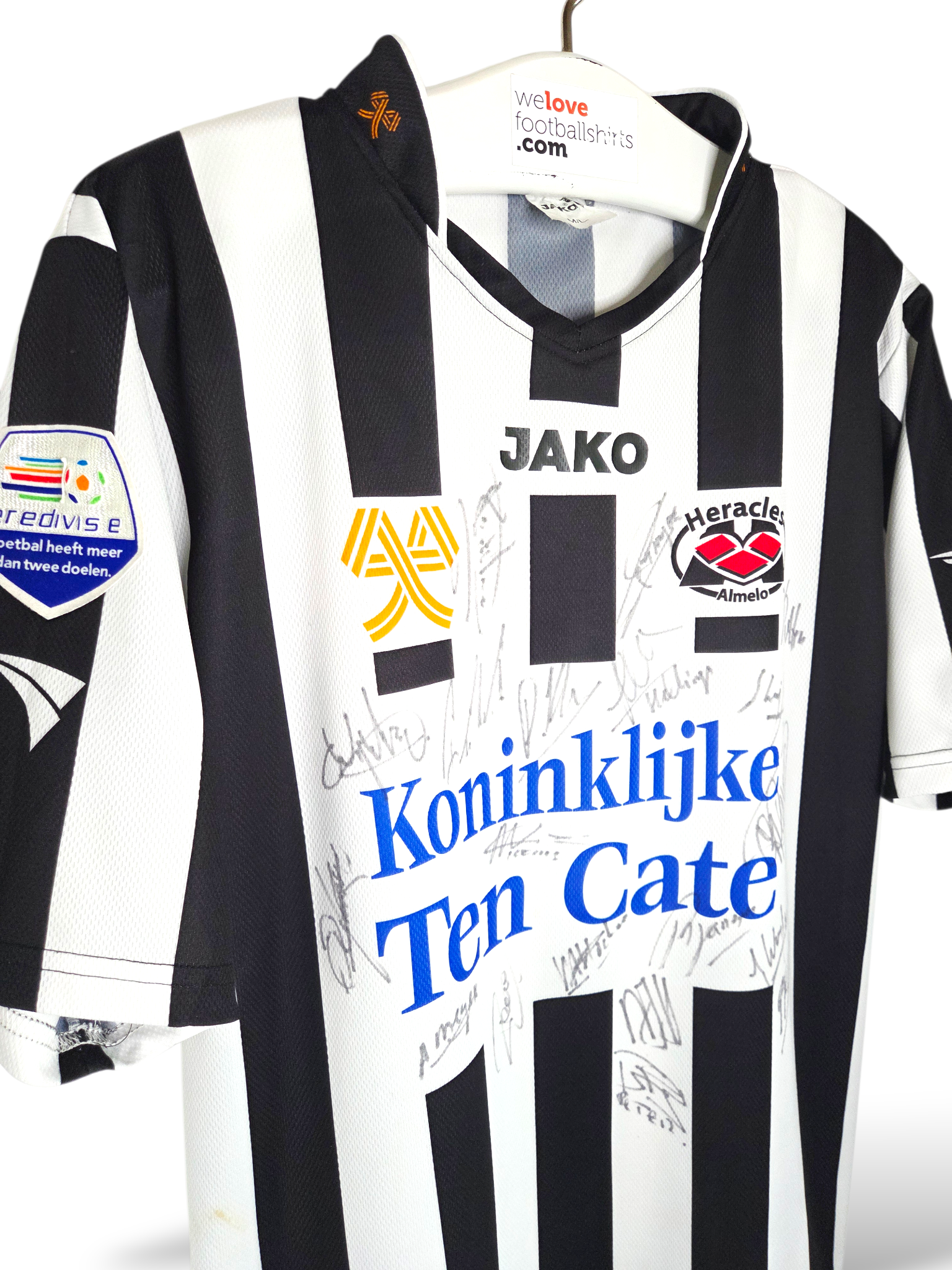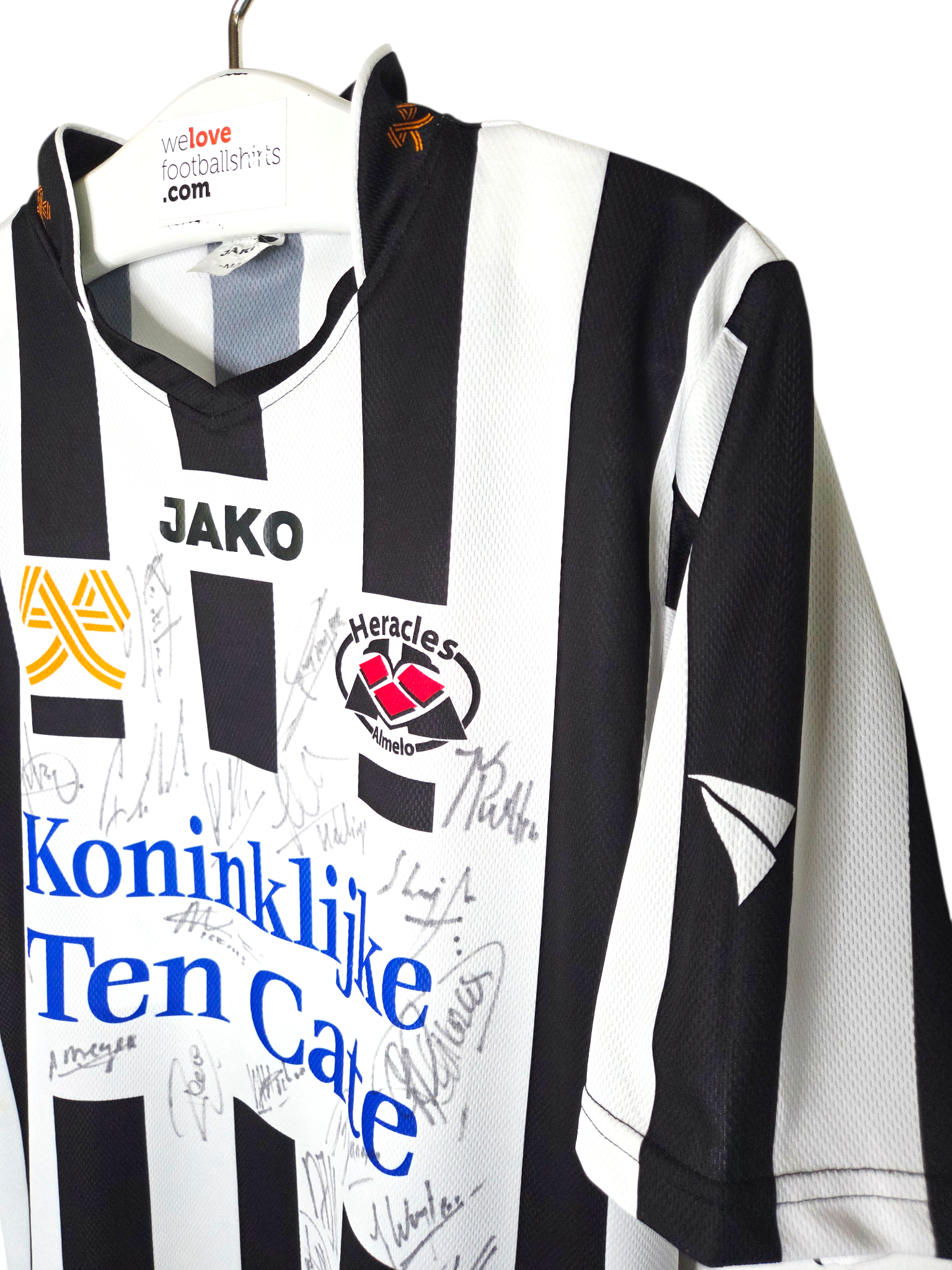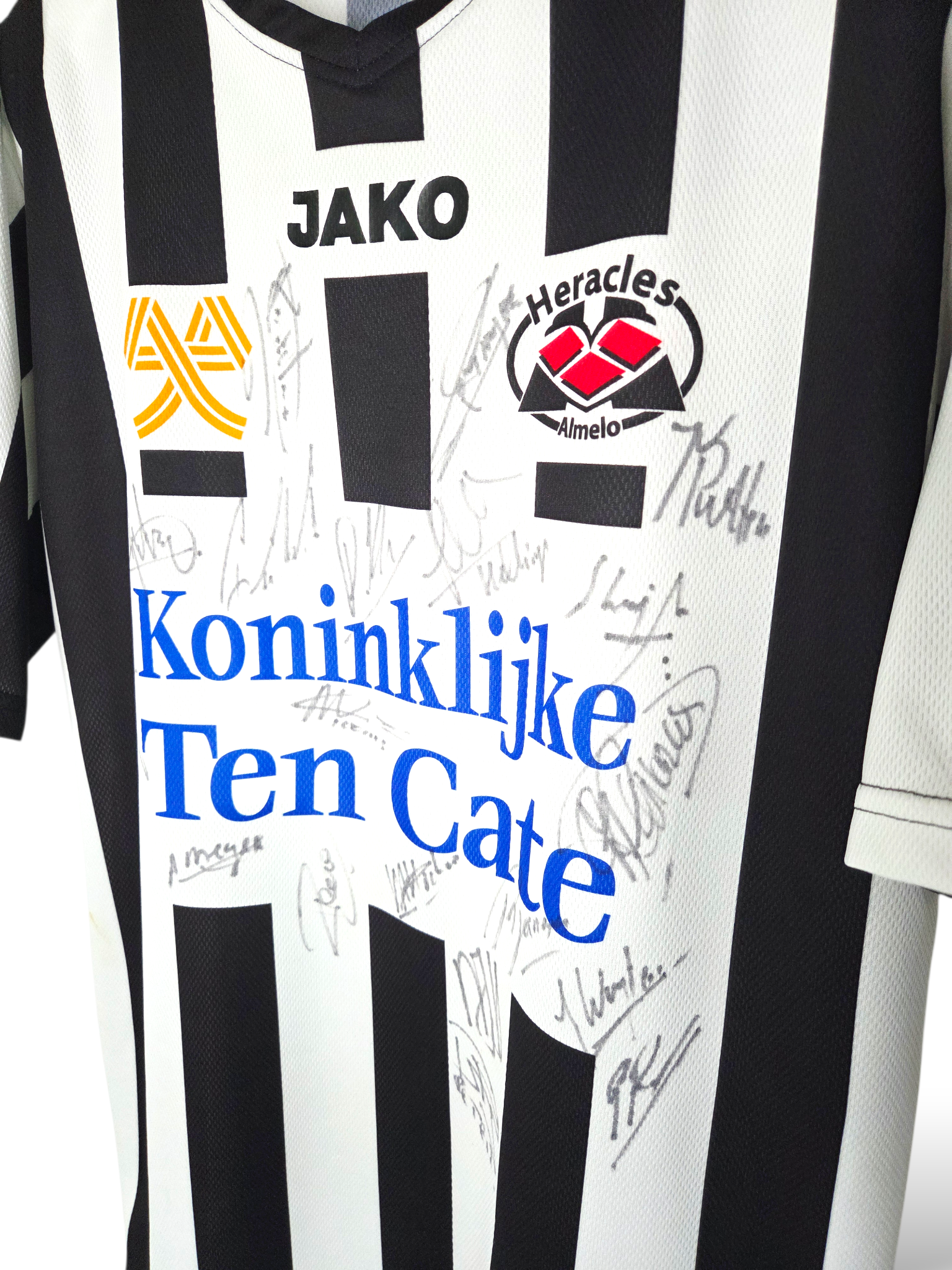 Jako vintage gesigneerd en Matchworn voetbalshirt Heracles Almelo 2004/05